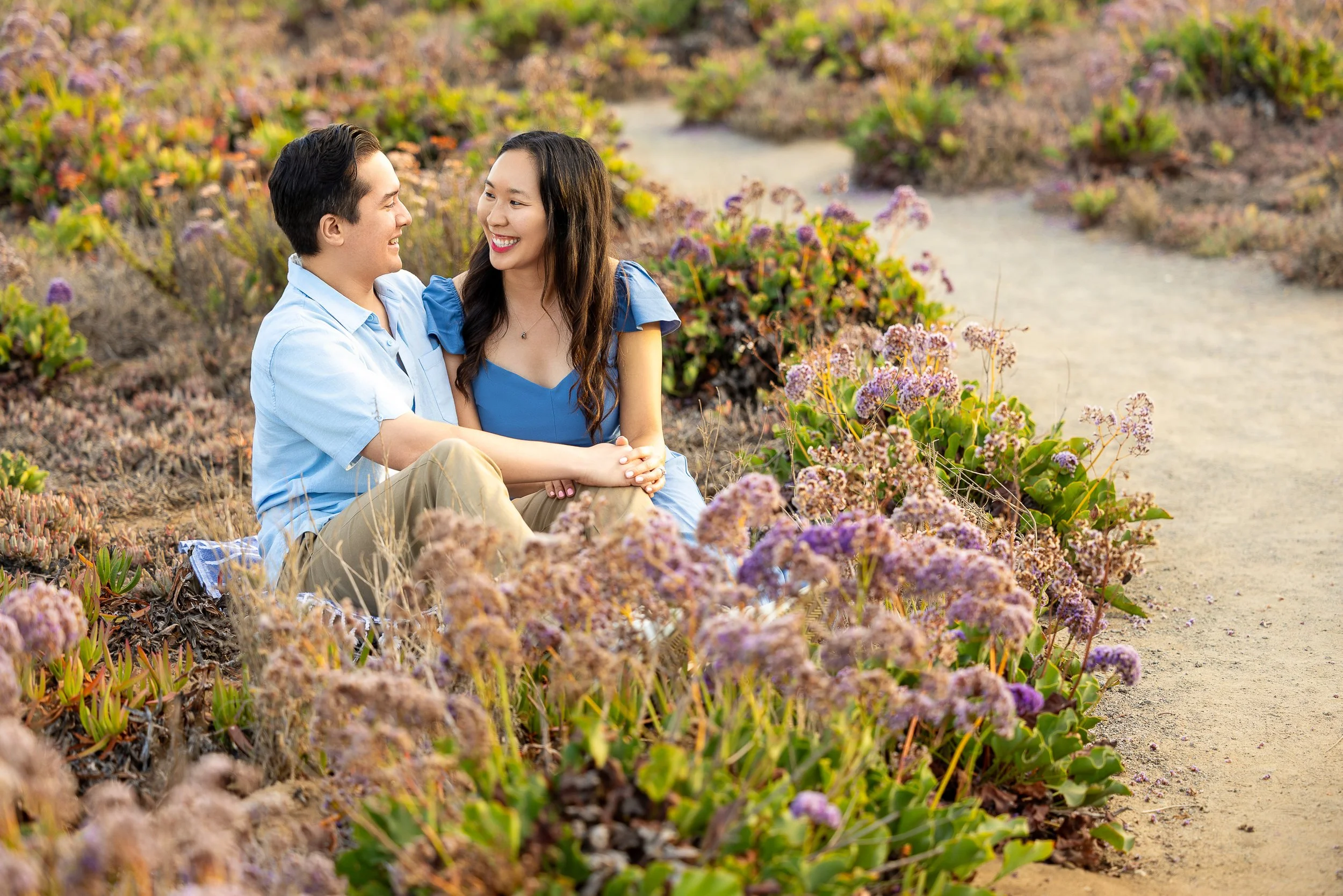 We photographed a couple not long ago along one of the bluffside trails here in North County. It was late in the wildflower season, and we weren't expecting much, but there was a small patch of purple still holding on.
